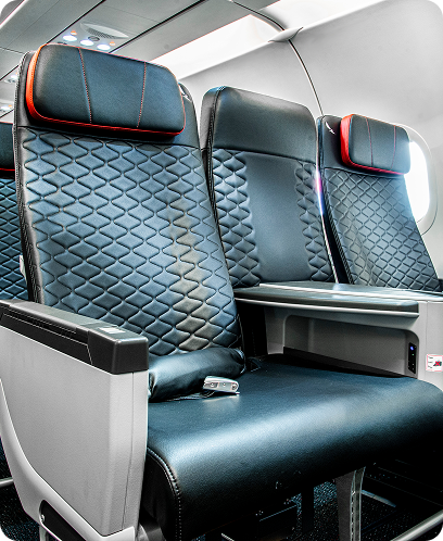 Profitez des sièges Premium, avec plus d'espace et un emplacement privilégié dans les trois premières rangées de l'avion, conçus pour vous offrir plus de confort.