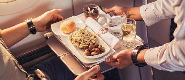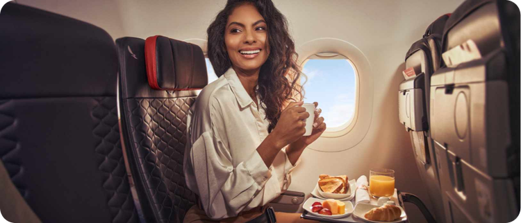 Un menú pensé pour éveiller vos sens. Collations sur vols courts, boissons et menus de chefs reconnus sur toutes les routes.